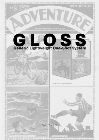 In the beginning, I needed a condensed yet flexible game system to GM spontaneous sessions without (much) preparation, at the preliminary end stands GLOSS. As stated in the name, it is a lightweight ttrpg-system designed primarily for fast character creation and play in one-shot contexts. As such, it does away with skills in favor of character-defining Statements as well as so-called 'Composite Attributes' (combining two of the six basic attributes, fitting the situation at hand). Weapons, distances and health are all conceptualized in categories, ranges or stages, providing the flexibility to tell stories of every genre. Rules for fast, yet strategic combat, guidelines for handling equipment, adversaries and character advancement are provided. Additionally, a short actual play section, showing the ruleset in action, as well as a character sheet aim to let you jump right in.